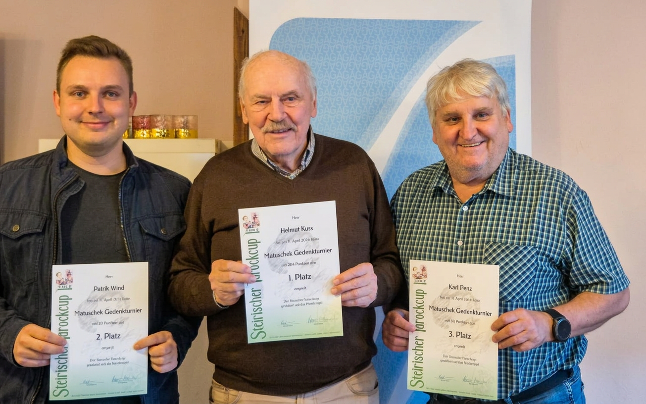 Am vergangenen Wochenende fand in Kapfenberg das alljährliche Matuschek-Gedenkturnier im Gasthaus Reitbauer statt. Das Turnier wurde vom Duo Brigitta Hainz und Walter Mannich souverän geleitet und war von spannenden Partien und guten Leistungen geprägt. Besonders herausragend war die dritte Runde von Helmut Kuss aus Graz, der sensationelle 137 Punkte erspielte.