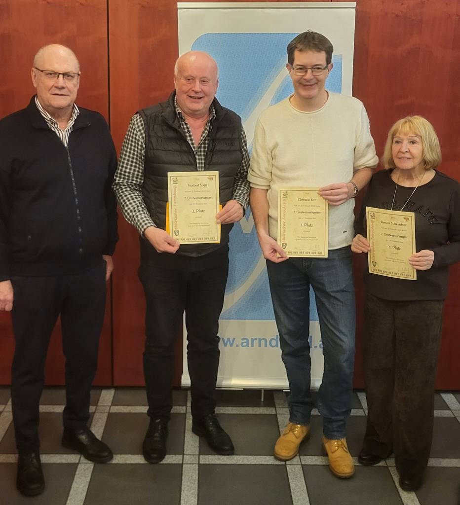 Für die Teilnehmer aus Frohnleiten gab es diesmal hingegen wenig zu holen. Walter Vojta und Siegfried Pichler erreichten im Feld der 58 Spielerinnen und Spieler einen Platz im Mittelfeld. Wolfgang Thomann, Christine Gollesch und Andrea Affenberger hatten wenig Kartenglück und mussten sich mit hinteren Platzierungen zufriedengeben.