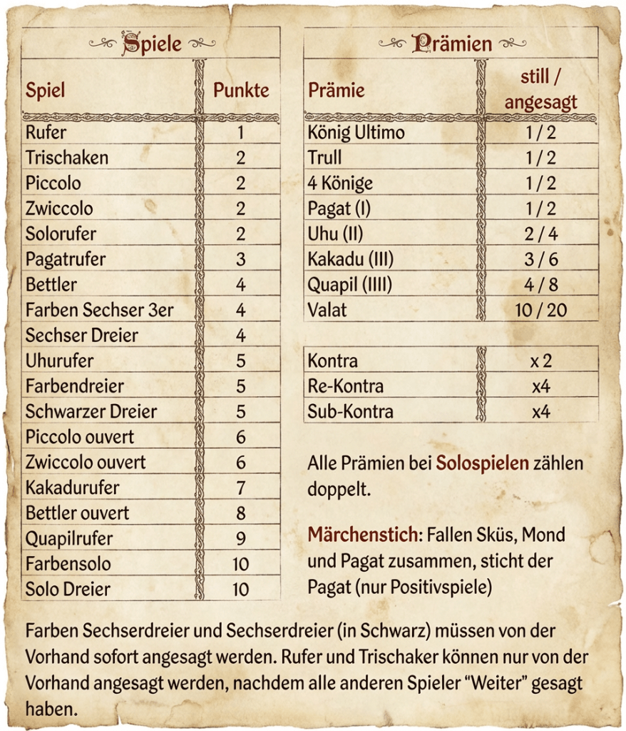 Lizitationstabelle Tarockfreunde Frohnleiten