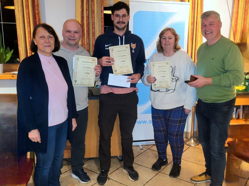Als Vertreter der Frohnleitener Tarockrunde waren Walter Vojta mit +45 und Wolfgang Thomann mit +27 im Mittelfeld zu finden, Andrea Affenberger und Siegfried Pichler konnten bei ihrer ersten Turnierteilnahme ebenfalls erfreuliche Ergebnisse erzielen.